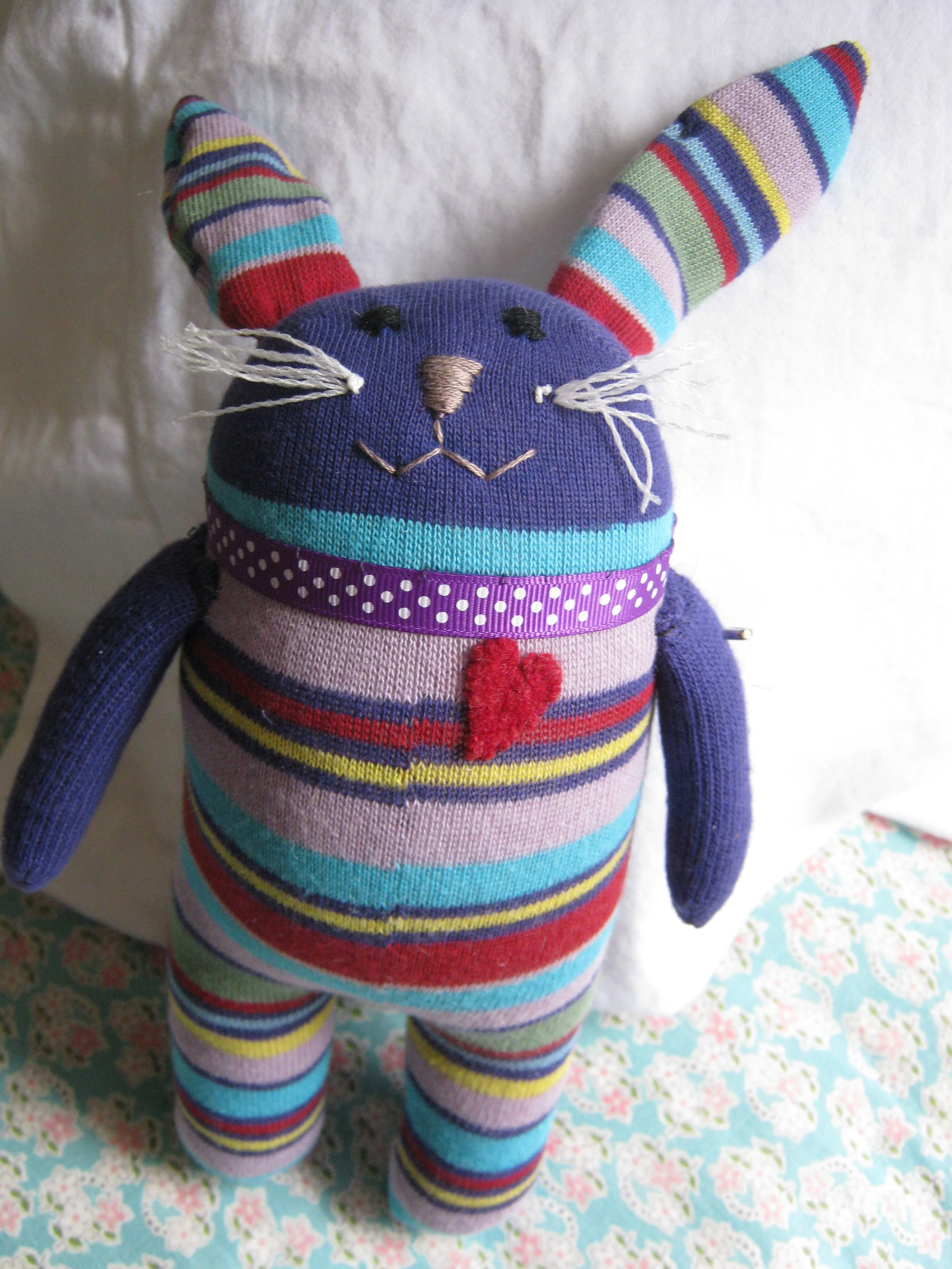 Each one is carefully hand sewn from new and recycled socks, gloves and other fabrics, hand washable and durable for use by babies, young children and big kids at heart.